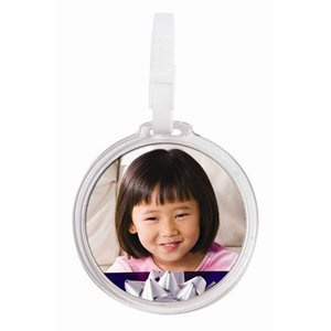 970 - Photo Bag Tag Insert size: 2-7/8" diameter Holds two photos Plastic vinyl strap included Makes a great luggage tag Call for custom imprinting options