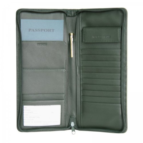 Travel in style with the International Expanded all Nappa Cowhide Case. This passport holder has twelve slots for credit cards, pockets for travel papers and a passport sleeve. Securely zipping closed this durable leather case keeps everything in place. An ID window makes viewing a drivers license easy, while an exterior pocket provides easy access to boarding passes. A hidden traveler's check holder can also be used as a small wallet. Made of top grain nappa leather and comes with a pen. Comes in green. Assembly level/degree of difficulty: No Assembly Required.